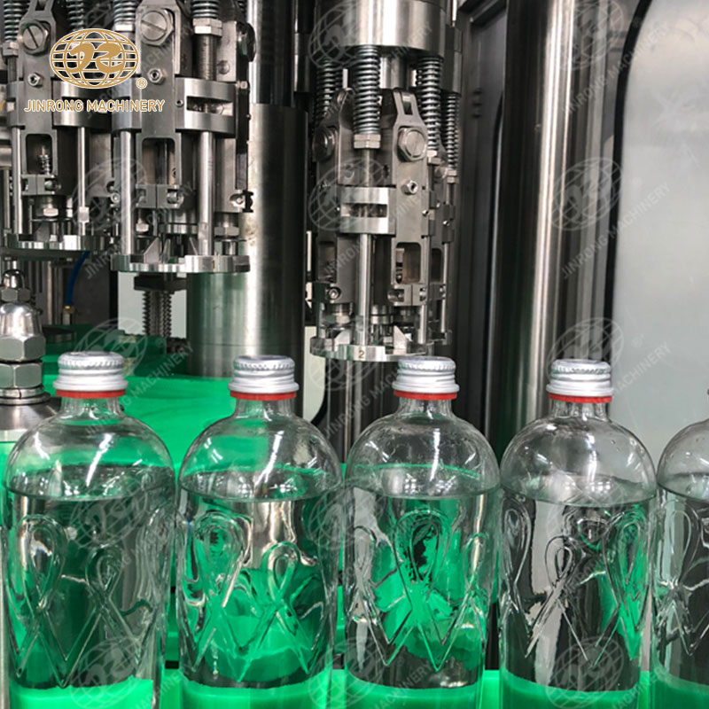 接下來是灌裝工序。在這個過程中,清洗干凈的玻璃瓶會被自動輸送到玻璃瓶碳酸飲料灌裝機。碳酸飲料灌裝設備使用壓力控制系統,將預先調配好的碳酸飲料從儲罐中注入到玻璃瓶中。這個過程需要精確控制,以確保每個瓶子都能被正確地填滿,不會出現溢出或不足的情況。