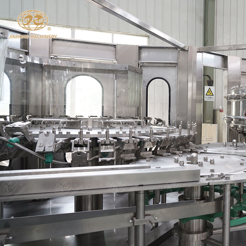 碳酸飲料灌裝設(shè)備采用卡瓶頸傳動技術(shù),實現(xiàn)全自動沖瓶、灌裝、旋蓋等工序,自動化程度高,配有CO2壓力控制精確,液位控制穩(wěn)定。設(shè)有多處卡瓶、缺瓶、缺蓋、過載等保護報警裝置,確保出品質(zhì)量。該碳酸飲料灌裝生產(chǎn)線具有可靠性高、效率高、操作簡便等優(yōu)點。