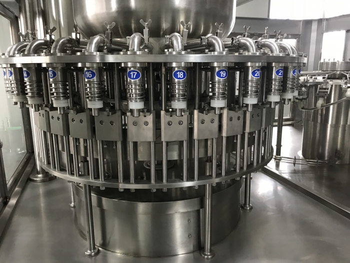 全自動灌裝生產線主傳動采用齒輪傳動和開式組合傳動,效率高、噪音低、使用壽命長、維修方便、潤滑充分。灌裝機該設備采用的是性能可靠,操作簡便,維護簡單的微電腦控制系統和氣動控制系統,是將洗瓶、灌裝和壓蓋全過程在封閉狀態下進行有效地防止純凈水或礦泉水在灌裝過程中可能發生的二次污染,做到真正的無菌灌裝,是目前國內理想的純凈水/礦泉水灌裝設備。變頻器用于控制機器主電機的轉速,全自動灌裝機采用無級變頻調速。灌裝機該設備采用的是性能可靠,操作簡便,維護簡單的微電腦控制系統和氣動控制系統,是將洗瓶、灌裝和壓蓋全過程在封閉狀態下進行有效地防止純凈水或礦泉水在灌裝過程中可能發生的二次污染,做到真正的無菌灌裝,是目前國內理想的純凈水/礦泉水灌裝設備。
