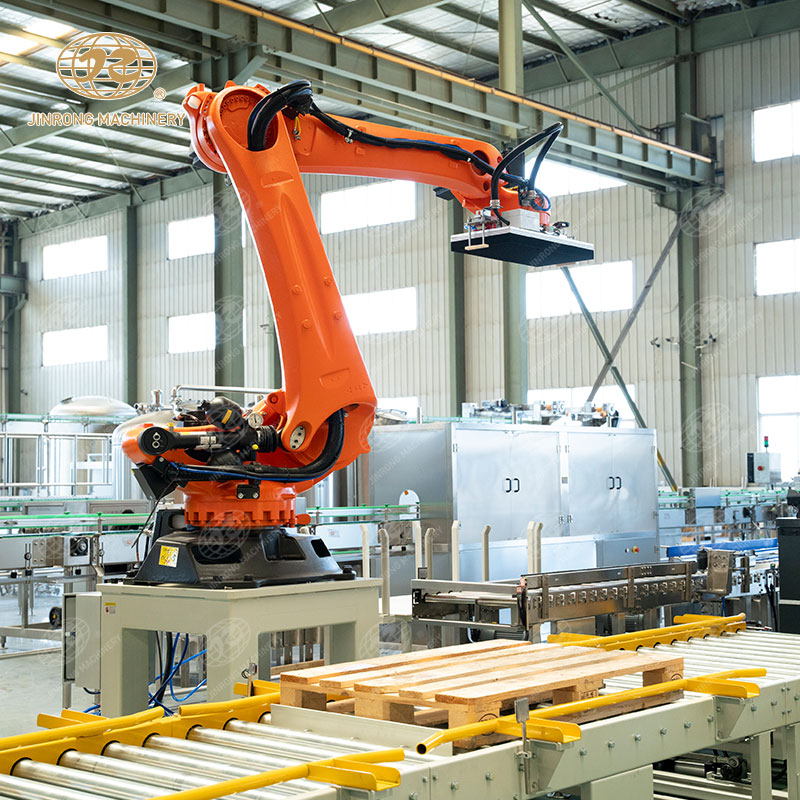 碼垛機:將膜包好的易拉罐按照一定的排列方式堆碼成垛,以便于叉車等搬運設(shè)備進行搬運和存儲,提高物流效率。